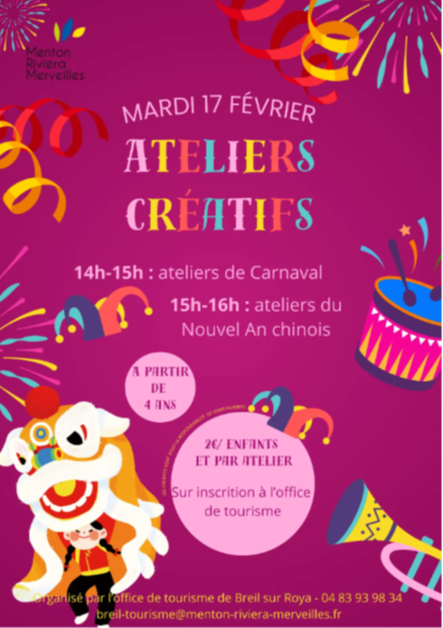 De 14h à 15h, les enfants pourront participer à un atelier sur le thème du Carnaval, puis de 15h à 16h, un atelier sera consacré au Nouvel An chinois. Ces ateliers sont ouverts aux enfants dès 4 ans, accompagnés d’un adulte.