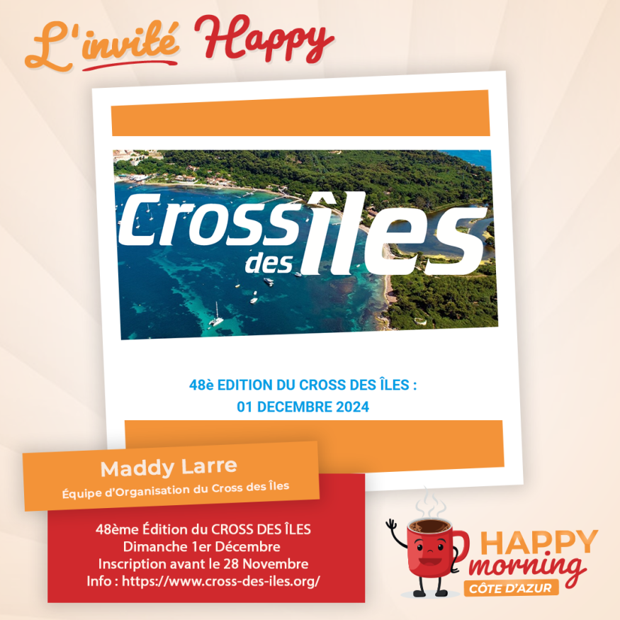 Dans l'émission happy morning Côte d'Azur, Loric reçoit Maddy Larre équipe d'organisation du cross des iles. Présentation et questions / réponses sont au programme de cet interview.